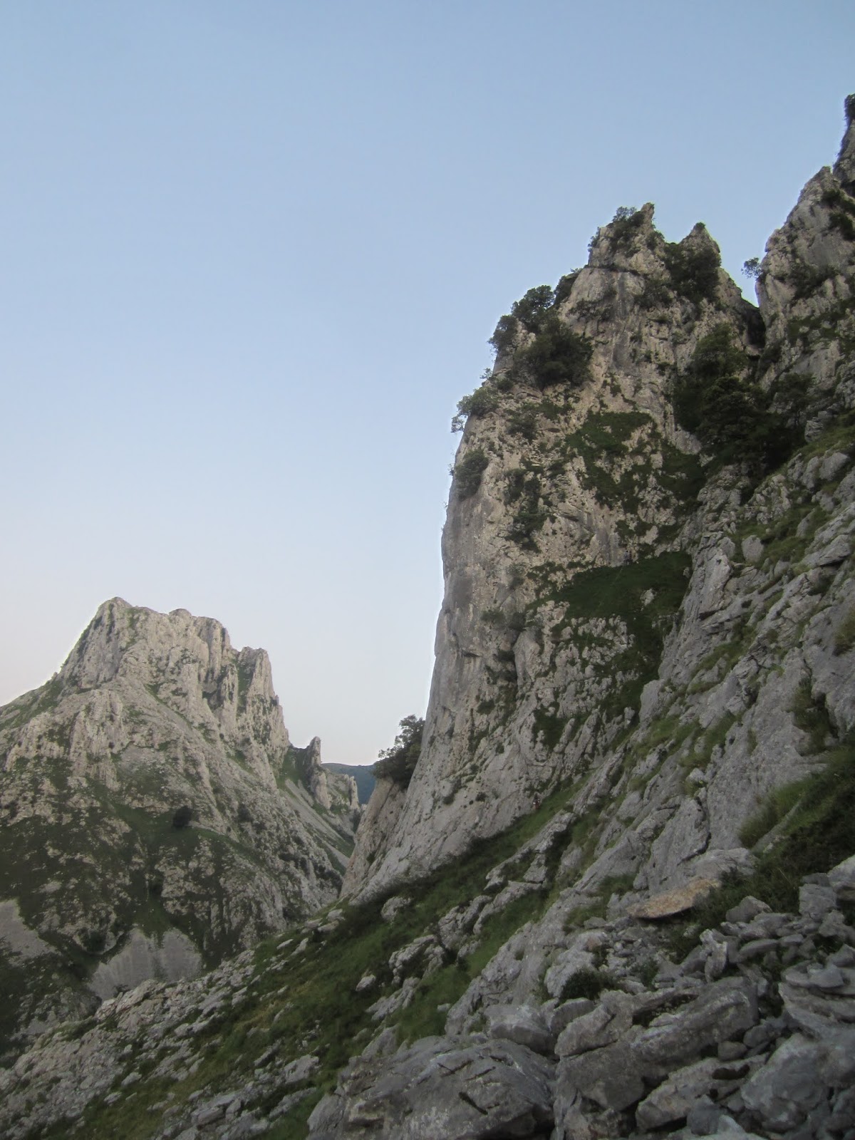 Hacia la izquierda, hacia el centro de la pared de Eguzkiarre: Un poco delante se cruzan unas placas de II grado